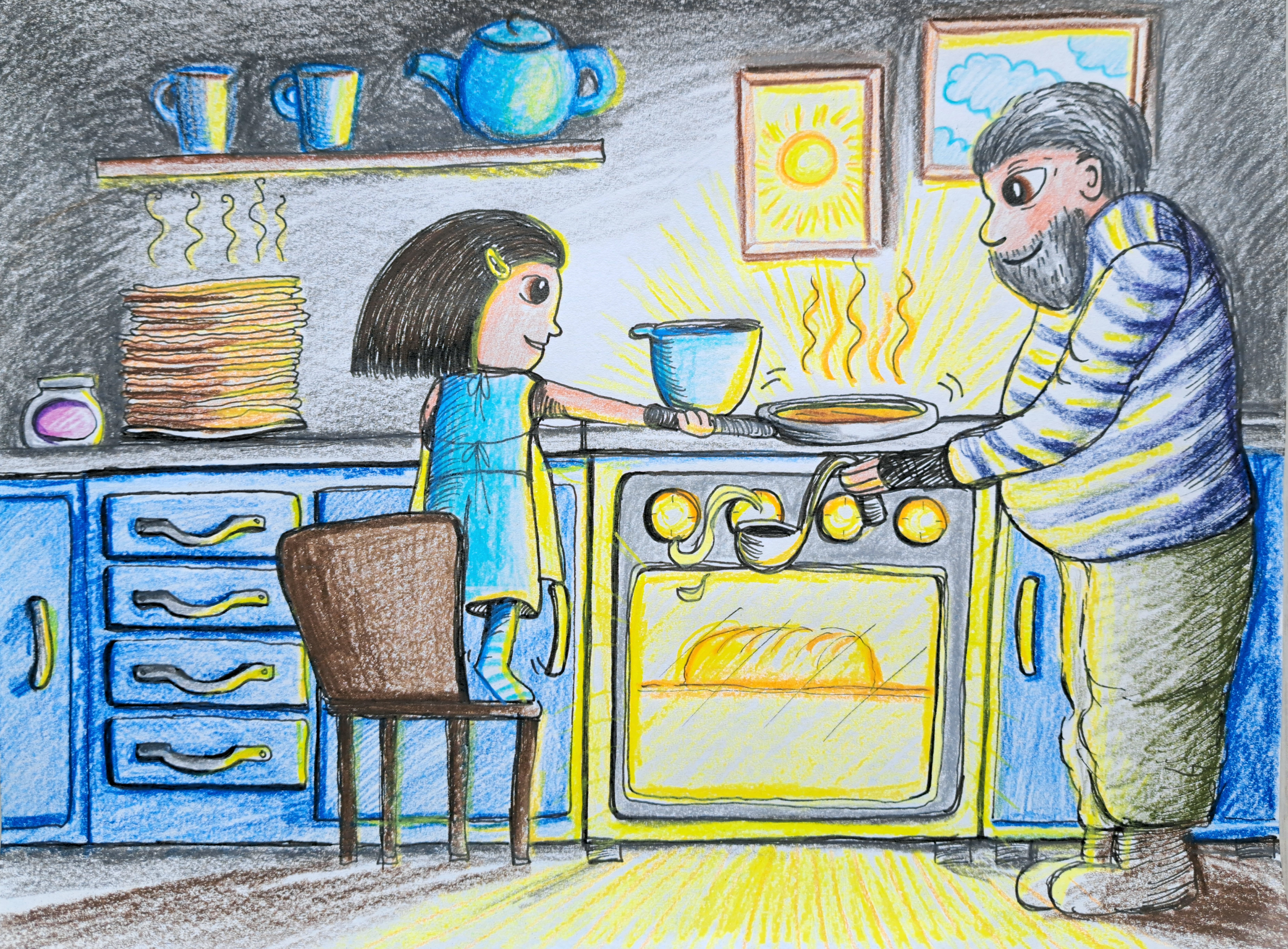 Jeg foreviger dåbsportrættet, søskendebilledet eller barnebarnets minde om bedstefars pandekager og bedstefar, til et “levende” håndtegnet billede.