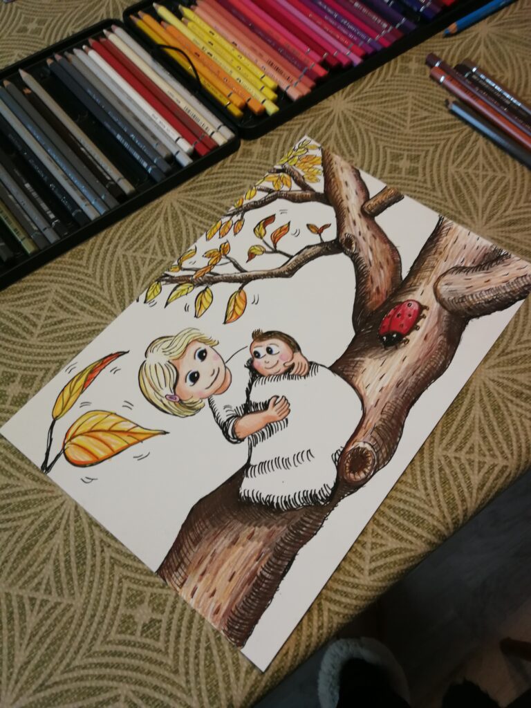 Det her synes jeg er en af de mest værdifulde og vigtige opgaver. Jeg har en særlig kærlighed til de lidt svære tegninger, hvor en man har mistet skal optræde på tegningen. Måske skal bedstemor have den tur på elefantryg hun aldrig kom ud på? Måske endda med sin yndligshat og sit barnebarn… 🙂